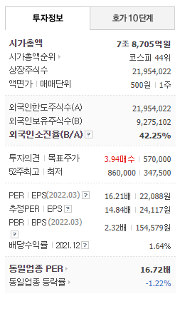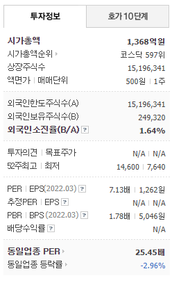 엔씨소프트의 실적은 2021년 연결기준 매출액 2조3천억원으로 전년대비 하락했으며, 영업이익과 당기순이익 역시 50% 하락한 수치를 기록하였습니다. 신작 게임의 실패와 더불어 판관비, 인건비 등 비용 증가로 인해 영업이익이 감소하였습니다. 하지만 2021년 11월에 출시된 모바일 게임 리니지W가 국내와 대만 양대 마켓 모두 매출 순위 1위를 기록하면서 올해는 실적이 개선될 것으로 전망하고 있습니다.
