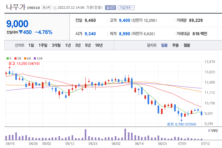 - 나무가는 2004년 10월 14에 설립된 회사로 2015년 11월 코스닥 시장에 사장한 기업입니다.