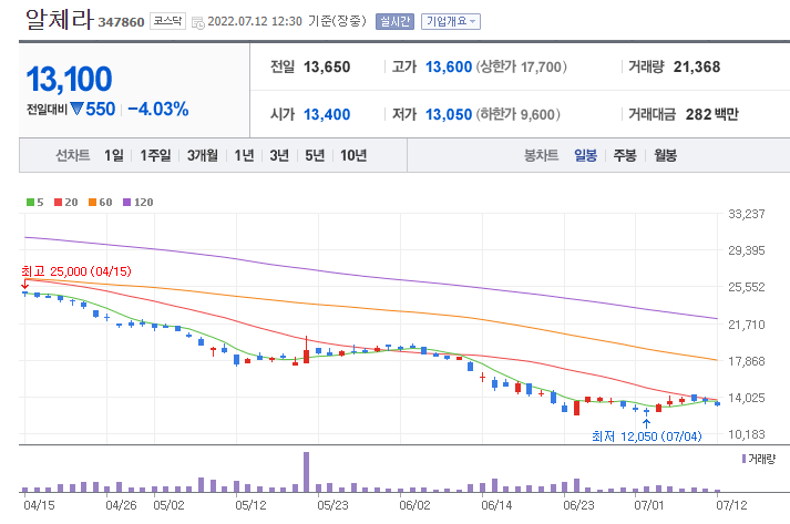 알체라의 실적은 2021년 연결기준 매출액 100억원이며 매년 영업손실과 당기순손실이 커져만 가고 있습니다. 그 이유로는 매출원가율 및 주식보상비용, 지급수수료 등의 증가로 보이며, 금융자산 처분 이익의 감소 등으로 인해 순손실 또한 악화되었습니다. 알체라가 초기 메타버스 관련주로 주목받은 이유는 네이버의 자회사인 스노우가 알체라의 최대주주로 있기 때문입니다.