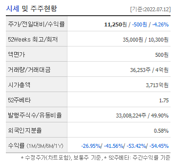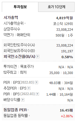 넵튠은 시장약세와 경기침채로 인해 긴 하락세를 이어가고 있습니다. 전년도 대비 54% 수준으로 주가가 떨어졌으며, 지난 2020년 말 최고 43,200원의 주가를 기록한 것에 비해 크게 하락한 상태입니다. 재무제표를 보시면 매출액은 지속적으로 상승세를 보이고 있지만, 공격적인 투자와 인건비 상승 등으로 영업손실은 커져가고 있습니다. 하지만 당기순이익은 흑자전환에 성공하였습니다.