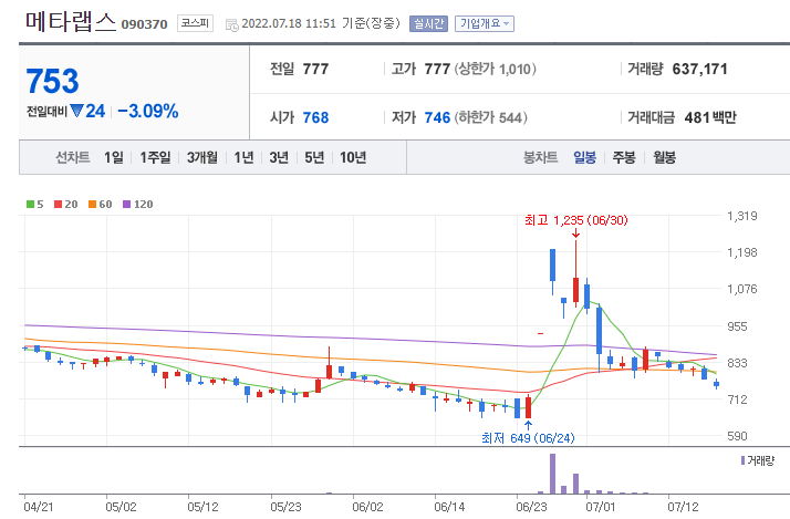 - 메타랩스는 2000년 11월 3일 설립되어 2006년 유가증권시장에 상장하였으며, 2018년 3월 30일 '메타랩스'로 상호를 변경하였습니다.