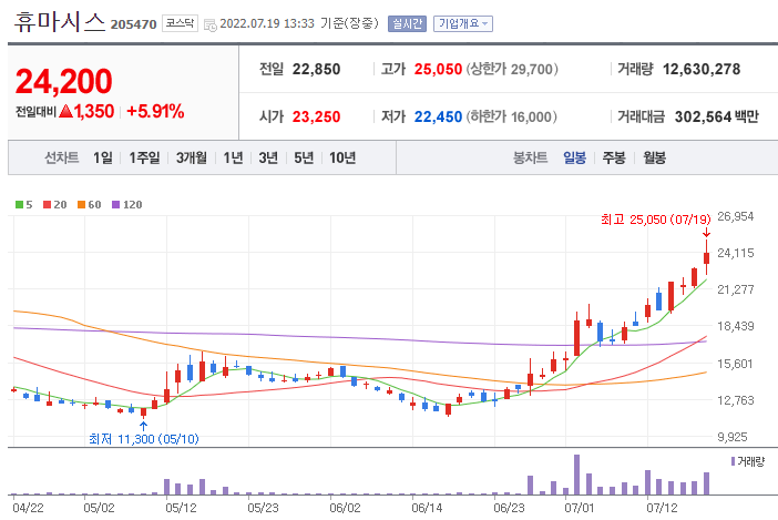| 휴마시스 주가 전망 분석 | 2022 코로나 수혜주 (0) | 2022.07.19 |