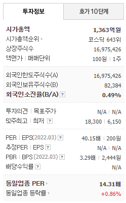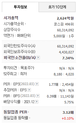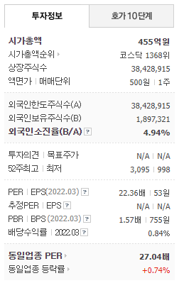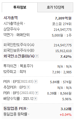 - 2022년 3월 전년동기 대비 별도기준 매출액은 6.8% 감소, 영업이익은 2.5% 감소, 당기순이익은 21.3% 증가하였습니다.