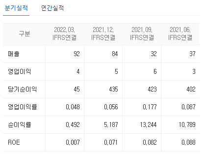 비덴트의 재무정보를 살펴보면 2022년 3월 전년동기 대비 별도기준 매출액은 287.9% 증가, 영업이익 흑자전환, 당기순이익은 95.3% 감소하였습니다.