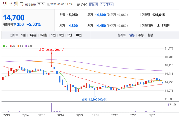 - 인포뱅크는 유무선 및 방송 통신네트워크 소프트웨어 개발 및 서비스사업을 영위할 목적으로 1995년 6월 14일에 설립된 기업입니다.