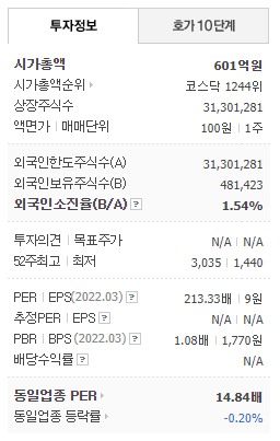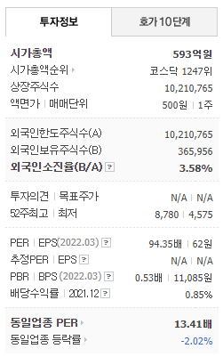 - 2022년 3월 전년동기 대비 별도기준 매출액은 8.7% 감소, 영업이익 적자전환, 당기순이익 또한 적자전환 되었습니다.