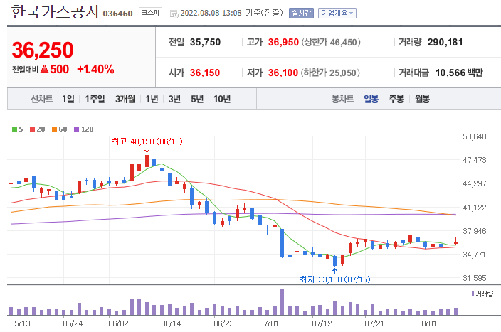 - 한국가스공사는 1983년 8월 18일 설립되어 천연가스 도입 및 판매 기업이며 1999년 12월 15일 유가증권 시장에 상장하였습니다.