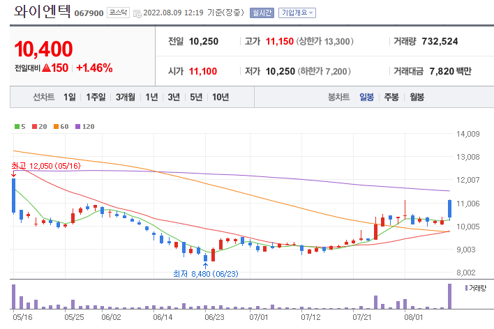 - 와이엔텍은 1990년 8월 31일에 설립되었으며, 2005년 12월 23일 코스닥시장에 주식을 상장하였습니다.