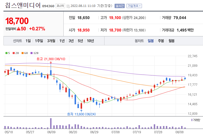 또한, 칩스앤미디어는 현재 한투반도체투자에 매각되어 새 주인을 찾고 있는데요. 대기업에 인수될 경우 주가 급등이 예상되고 있습니다.