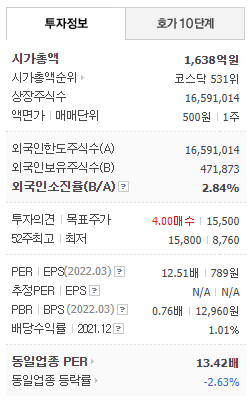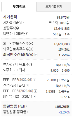 - 2022년 3월 전년동기 대비 별도기준 매출액은 15.7% 증가, 영업이익은 8.1% 증가, 당기순이익은 191.9% 증가하였습니다.