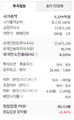 - 2022년 3월 전년동기 대비 별도기준 매출액은 7.5% 증가, 영업이익 적자전환, 당기순이익 적자전환 하였습니다.