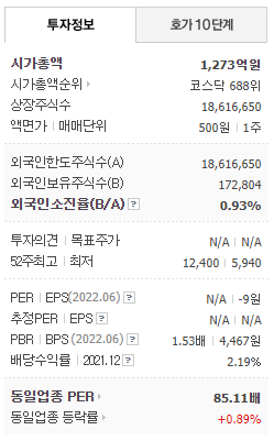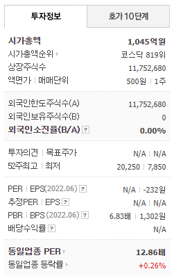 - 2022년 3월 전년동기 대비 별도기준 매출액은 46.7% 증가, 영업이익 적자전환, 당기순손실은 0.6% 증가하였습니다.