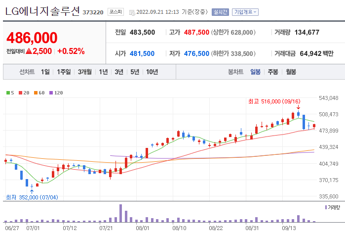 LG에너지솔루션은 가장 유명한 전기차 관련주 대장주입니다. 테슬라의 전기차 배터리를 공급하는 업체로 2차전지의 선두 기업으로 매우 유망한 기업 중 하나입니다.