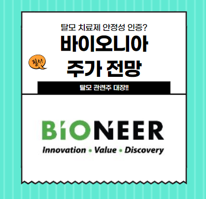 바이오니아는 2024년 약 400조원에 이르는 탈모 관련 시장에서 점유율 10% 이상을 목표로 하고 있으며, 이번 안정성 평가는 국내 식약처 안정성 승인으로 이어질 것이라고 보고 있어 향후 주가 상승에도 영향을 미칠 것으로 보고있습니다.