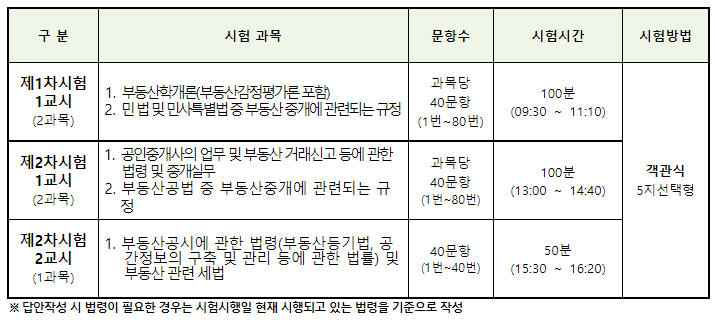 공인중개사 시험과목 및 방법
