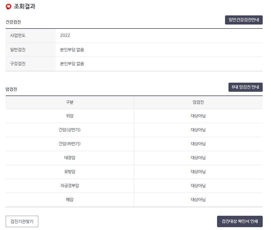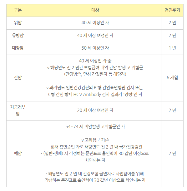 암건강검진 대상자는 일반건강검진 대상자 및 비용에 차이가 있습니다.