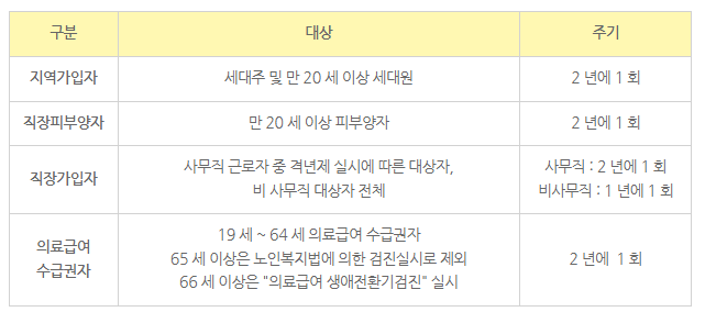 올해의 경우 출생연도가 홀수인 세대주 또는 만 20세 이상의 세대원이 건감검진 대상에 해당됩니다.