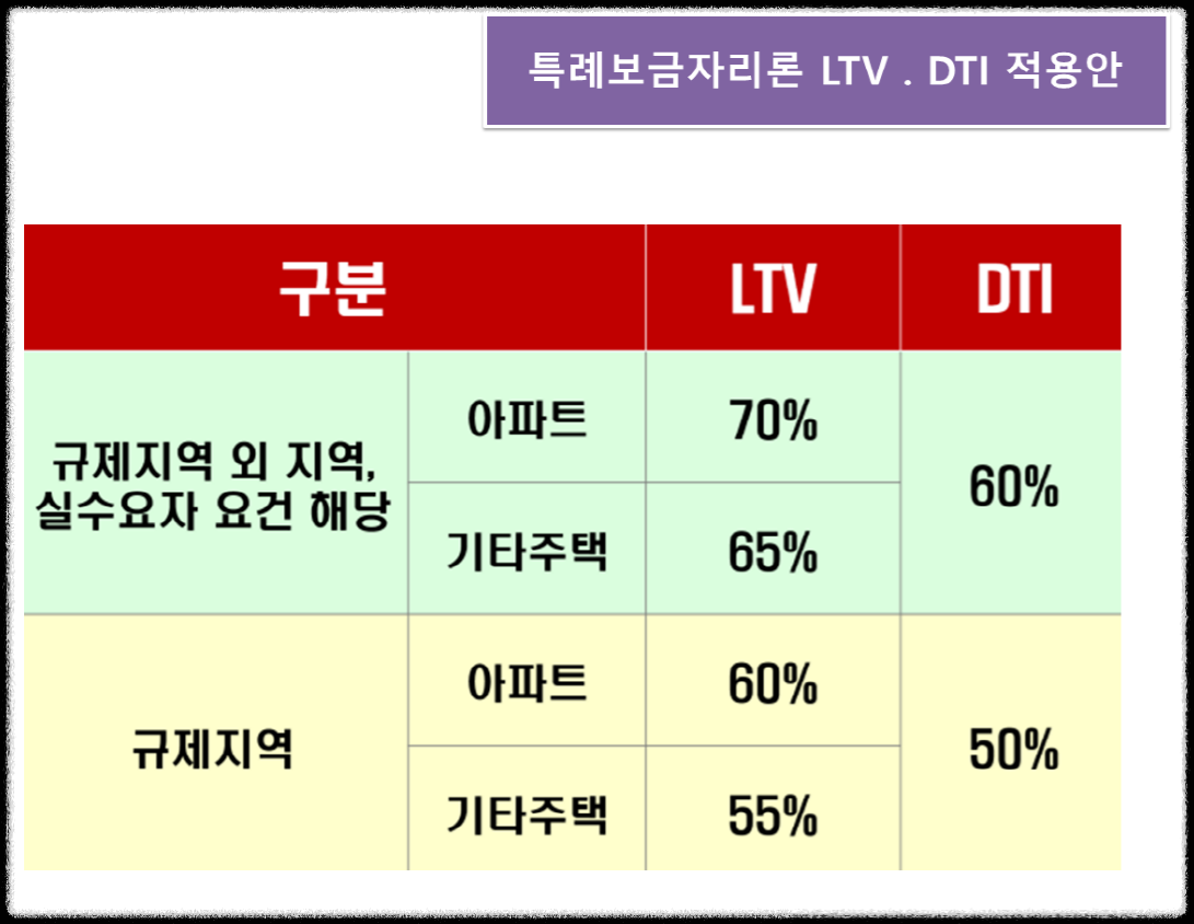 LTV와 DTI 뜻에 대해 정리한 사진입니다. 특례보금자리론을 실행하기 위해서 필수적으로 이해가 필요한 부분이니 천천히 살펴보시기 바랍니다.